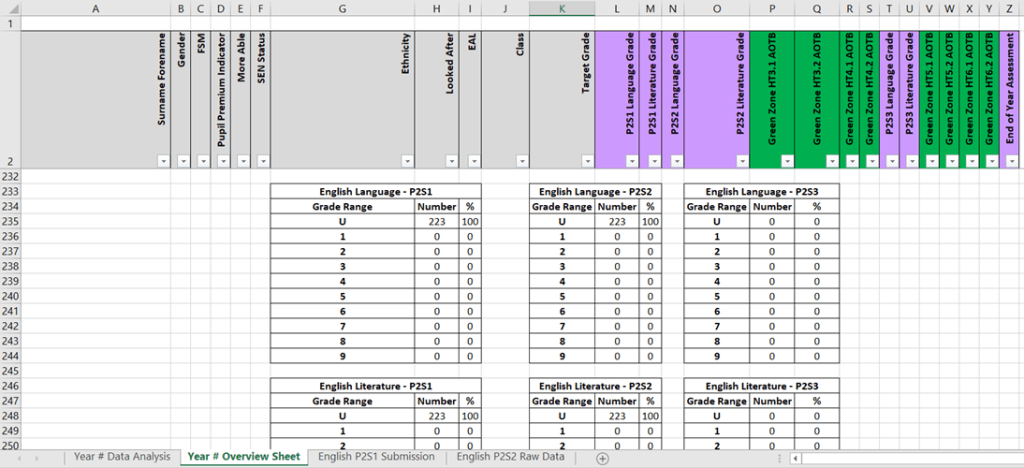 Now if you’re anything like me, you have moved from school to school and have always been reliant on that mystical ‘Data Person’ to build your department trackers; a mind-boggling piece of work that has so many different numbers, formulas and ‘don’t touch’ areas that they seem impossible to manage let alone create… unless you have the skillset. Well, hopefully this post will provide you with that skillset.