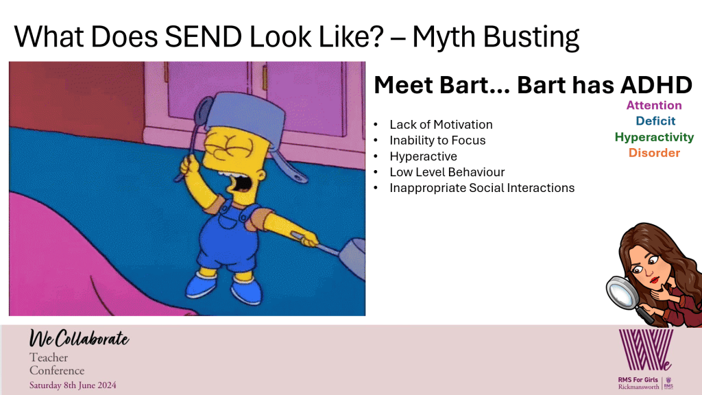 Meet Bart, Bart is your stereotypical white, British, boy diagnosis of ADHD. Bart is not a great example of what ADHD looks like, yet as a society this is what we have become comfortable with associating with the label.